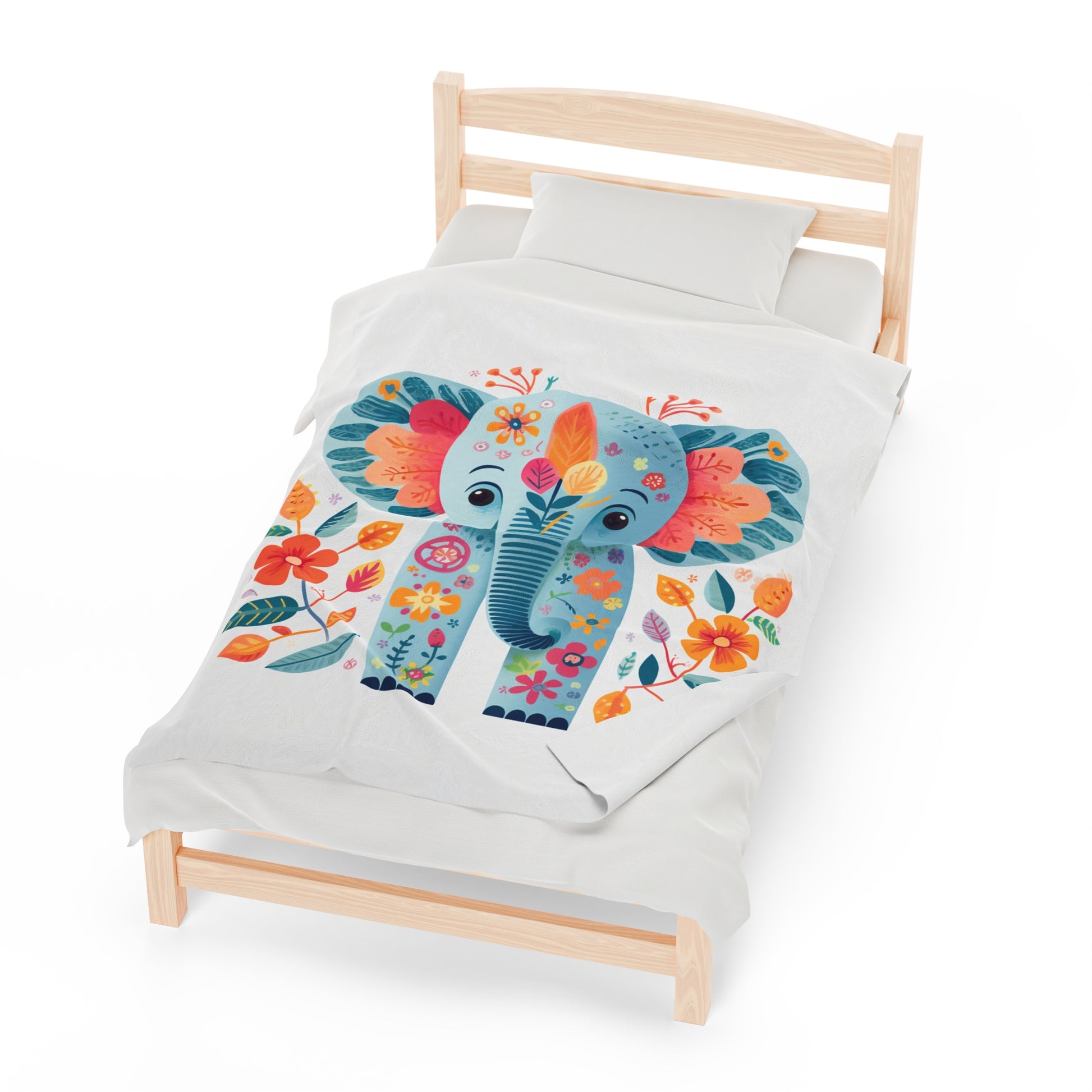 Mary Blair Inspired Child's Velveteen Blanket, Colorful Baby Elephant Design